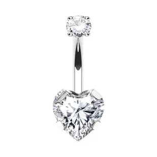 Srebrny Kolczyk do pępka z Tytanu z dwoma cyrkoniami SERCE Banan 1,6/10
