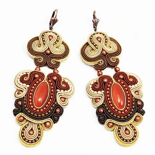 Niezwykle piękne i bardzo długie kolczyki z sutaszu - w eleganckich beżach, brązach i złocie z piaskiem pustyni. Długość 12 cm. Zawieszone na antyalergicznych biglach. Kolczyki wykonywane są na indywidu ...