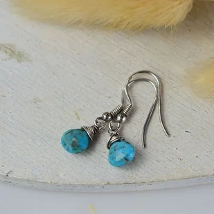 Srebrne kolczyki (srebro 925) z kroplami turkusu. Biżuteria została zoksydowana i wypolerowana. Długość całego kolczyka 3 cm. Biżuteria zostanie ozdobnie zapako ...