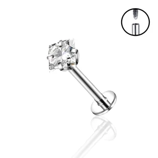 Tytanowy labret z kwadratową cyrkonią. (Rozmiar: 1,2/8/4)