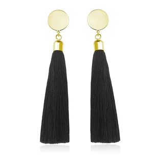 Wiszące kolczyki Chwosty Przedstawiamy piękne kolczyki w stylu boho wykonane ze srebra pr. 925 pokrytego 24k złotem. Średnica ringu to k. 1,2 cm, długość całkowita - ok. 8,5 cm. Chwosty osadzone są w specjalnych tulejkach jubilerskich, co nadaje całości wyjątkowo elegancki wygląd.