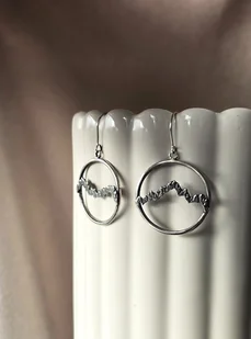 Wiszące kolczyki srebrne z górami