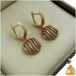 Wiszące Złote Pozłacane Kolczyki Ze Stali Chirurgicznej Z Cyrkoniami 18K