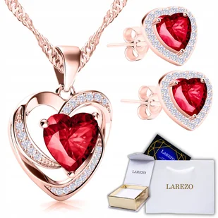 Zestaw Pozłacany Naszyjnik i Kolczyki Czerwone Serca Cyrkonie SREBRO 925