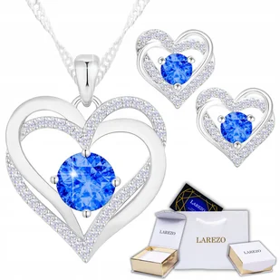 Zestaw Srebrny Naszyjnik i Kolczyki Srebrne 925 Serca z Niebieskim Oczkiem
