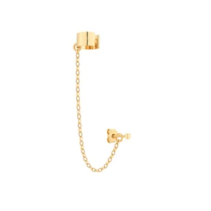 Złota nausznica z łańcuszkiem i kulką w całości wykonana ze srebra 925 powlekanego 24 karatowym żółtym złotem. Długość łańcuszka 7,5 cm Długość nausznicy 10 ...