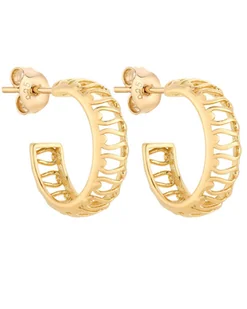 Złote, ażurowe kolczyki półkola. Całość wykonana ze srebra 925 powlekanego 24 karatowym żółtym złotem. Zapinane na sztyft. Kolczyki posiadają zapięcia (baran...