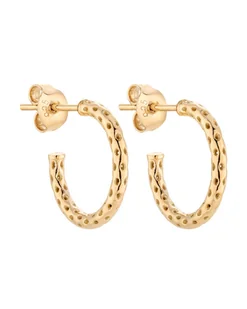 Złote ażurowe kolczyki półkola. Całość wykonana ze srebra 925 powlekanego 24 karatowym żółtym złotem. Zapinane na sztyft. Kolczyki posiadają zapięcia (barank...