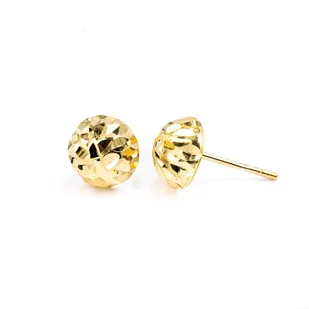 Złote kolczyki w kształcie diamentowanych, zdobionych półkulek. Wykonane z lśniącego złota próba 585. Fabrycznie nowe.