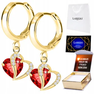 Złote Kolczyki 925 Kryształowe Czerwone Serca z Cyrkoniami Serduszka NADRUK