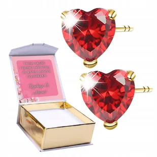 Złote Kolczyki 925 na Sztyfcie Czerwone Kryształowe Serca Kryształki NADRUK