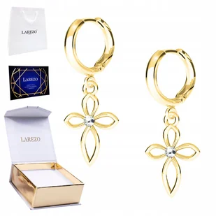 Złote Kolczyki 925 z Krzyżykami Kryształami Religijne Krzyże Pozłacane 24K