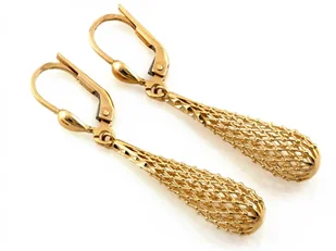 Prezentujemy Państwu wyjątkowe złote kolczyki długie o ażurowym wzorze w kształcie maczug. Wykonane z biżuterii złotej o próbie 0.375, łączą w sobie elegancj...