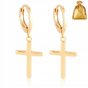 Złote Kolczyki Krzyżyki Wiszące Ze Stali Chirurgicznej Zatrzask 18K Prezent
