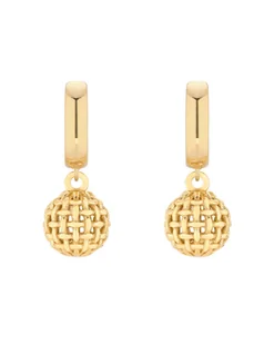 Złote kolczyki z ażurowymi kulkami w całości wykonane ze srebra 925 powlekanego 24 karatowym żółtym złotem. Kulka 11 mm Długość całkowita ok 2,5 cm Zapakowan...