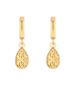 Złote kolczyki z ażurowymi łezkami w całości wykonane ze srebra 925 powlekanego 24 karatowym żółtym złotem. Łezka 12,5 x 6,5 mm Długość całkowita ok 3 cm Zap...