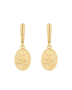 Złote kolczyki z medalionami. Całość wykonana ze srebra 925 powlekanego 24 karatowym żółtym złotem. Zapinane na bigle angielskie. Medalion 17,3 x 10,7 mm Dłu...