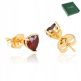 Złote Kolczyki Ze Stali Chirurgicznej 18K Serca Czerwone Kryształki Sztyfty