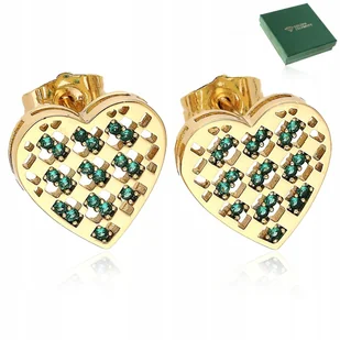 Złote Kolczyki Ze Stali Chirurgicznej 18K Serca Sztyft Zielone Z Cyrkoniami