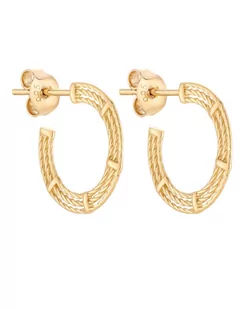 Złote, zdobione kolczyki półkola. Całość wykonana ze srebra 925 powlekanego 24 karatowym żółtym złotem. Zapinane na sztyft. Kolczyki posiadają zapięcia (bara...