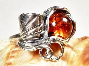 Pierścionek srebrny z bursztynem naturalnym bałtyckim Jest wykonany z surowców najwyższej jakości. Srebro próba 0,925. Waga całości: 2,6 gram. Rozm. pierścio...