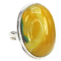 Przepiękny elegancki pierścionek z dużym naturalnym agatem w srebrze. Naturalny agat wybarwiony w odcieniach żółtych i zieleni z wyjątkowymi wzorami. Pochodzenie: Brazylia. Kamień oszlifowany na połysk. Wielkość kamienia - ok.