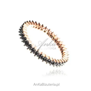 ankabizuteria.pl Pierścionek srebrny pozłacany różowym złotem z czarn