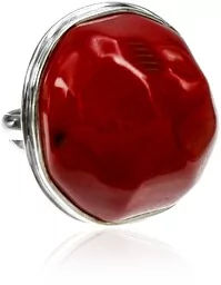 Piękny pierścionek z naturalnym koralem w srebrze. Elegancki pierścionek z naturalnym koralem w srebrze. Prawdziwy koral - morski koralowiec oszlifowany na połysk z zachowaniem wyjątkowej pierwotnej urody. Wybarwiony w klasycznej szlachetnej czerwieni. Wielkość kamienia: