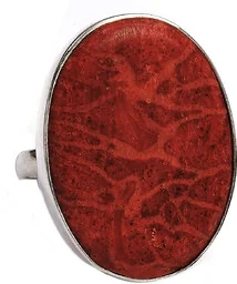 Piękny okazały pierścionek z dużym naturalnym koralem w srebrze. Elegancki pierścionek z naturalnym koralem w srebrze. Prawdziwy koral - korzeń koralowca oszlifowany na połysk z zachowaniem pierwotnej urody. Rozmiar pierścionka: 10-26 ( pierścionek regulowany) Wielkość kamienia: