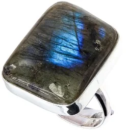 Przepiękny pierścionek z dużym naturalnym labradorem w srebrze. Elegancki pierścionek z naturalnym labradorem w srebrze. Pięknie oszlifowany naturalny labrador - unikatowy minerał w wysoko cenionej odmianie. Wyraźne efekty świetlne widoczne pod światło. Charakterystyczne dla labradorytów migotanie przypominające skrzydła egzotycznych motyli.