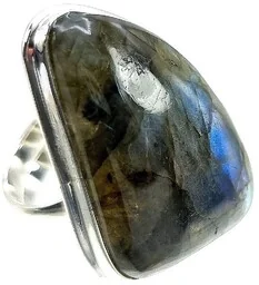 Przepiękny pierścionek z dużym naturalnym labradorem w srebrze. Elegancki pierścionek z naturalnym labradorem w srebrze. Pięknie oszlifowany naturalny labrador - unikatowy minerał w wysoko cenionej odmianie. Wyraźne efekty świetlne widoczne pod światło. Charakterystyczne dla labradorytów migotanie przypominające skrzydła egzotycznych motyli.