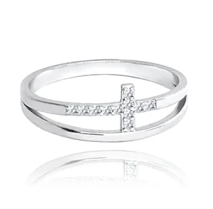 MINET Podwójny pierścien srebrny KRZYŻ z białymi cyrkoniami wielkość 20