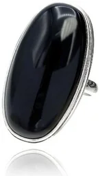 Piękny pierścionek z dużym naturalnym onyksem czarnym w srebrze. Naturalny onyks o charakterystycznej głębokiej czerni, oszlifowany na połysk. Osadzony w oprawie ze srebra. Elegancka biżuteria o wyjątkowej urodzie. Wielkość onyksu - ok.