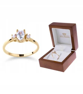 ZŁOTY PIERŚCIONEK ZARĘCZYNOWY ALLESIA 333 Piękny, złoty pierścionek zaręczynowy Allesia. Oprawka, w której osadzone są trzy kamienie, została wykonana na wzó...
