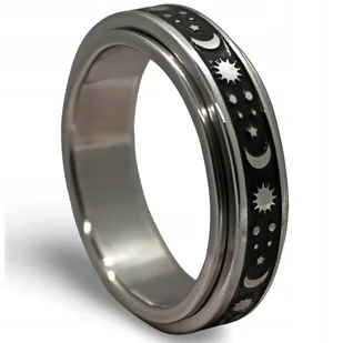 Pierścionek Antystresowy (Obrotowy) Motyw Słońca, Księżyca I Gwiazd Czarny