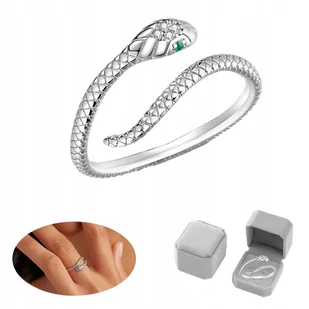 Pierścionek Damski Srebro 925 Wąż Kryształki Micro Pave Regulowany Prezent