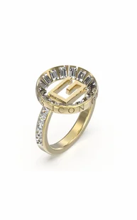 Pierścionek Guess Icon JUBR03013JWYG to piękna biżuteria, która z pewnością przyciągnie uwagę. Został wykonany z platerowanej stali nierdzewnej w kolorze złotym, co nadaje mu eleganckiego wyglądu. Pierścionek posiada sztywną konstrukcję z charmsem w kształcie monety o średnicy 19 mm, który umieszczony jest pośrodku. Na pierścionku znajduje się detale z logo G, które dodaje mu charakteru. Cała powierzchnia pierścionka jest pokryta aplikacją z sześciennymi cyrkoniami, które pięknie się mienią w świetle, co przyciąga uwagę.