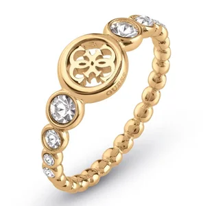 OPIS SZCZEGÓŁOWY WYKONANIE Damski platerowany pozłacany pierścionek z logo 4G zdobiony cyrkoniami. Wykonany ze stali nierdzewnej pokryty odporną na ścieranie...