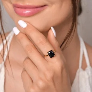 Pierścionek "Royal Black Treasure" z czarną cyrkonią- srebro 925 pozłacane