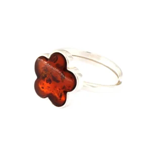 Pierścionek srebrny 925 kwiat bursztyn koniak - prezent