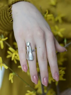 Oryginalny pierścionek z kotem w roli głównej. Wykonany ze srebra w śnieżno - białym kolorze, w oczkach umieszczone białe cyrkonie. Długość kota 3,6 cm. Waga...