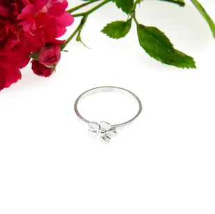 Pierścionek wykonany ze srebra z malutkim kwiatuszkiem. Szerokość i wysokość kwiatka: 7 mm. Szerokość obrączki: 2 mm. Waga: 1,4 g Dostępny rozmiar: 15. Pozos...