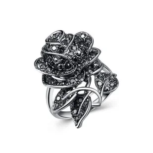 Cechy produktu Pierścionek z motywem róży Ozdobne cyrkonie Cztery rozmiary Materiał: stal