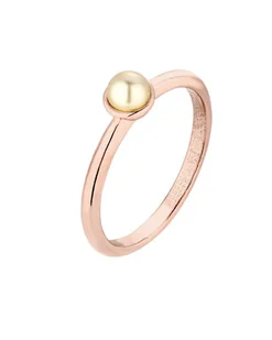 Złoty pierścionek zdobiony perłą Preciosa w kolorze vanilla. Wszystkie elementy wykonane ze srebra 925 powlekanego 24 karatowym różowym złotem. Pierścionek d...