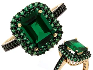 Pierścionek złoty 585 elegancka markiza ze szmaragdami z czarnym rodem S