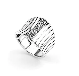 Srebrny pierścionek oksydowany ze wzorem R17 Bardzo efektowny srebrny pierścionek ze zdobieniami. Duży, srebrny, oksydowany pierścionek został wykonany z ogromną precyzją, przez co jest produktem najwyższej jakości. Do produkcji użyto srebra próby 925. Dzięki oksydowaniu uzyskujemy ciemniejsze zabarwienie, oraz zabytkowy charakter biżuterii. Oksydowany wyrób jest również zabezpieczony przed korozją i nie zmienia już swojego koloru z biegiem czasu.