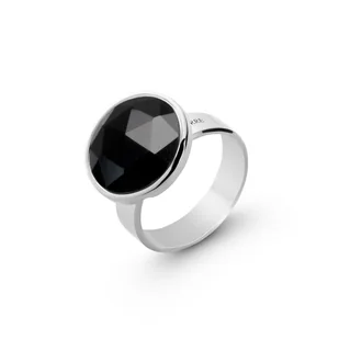 Srebrny pierścionek Rose Cut - czarny onyks w pokryciu platyną - rozmiar 15