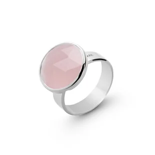Srebrny pierścionek Rose Cut - kwarc różowy w pokryciu platyną - rozmiar 15