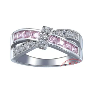 Srebrny pierścionek z cyrkoniami - Różowy 6