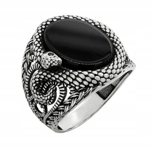 Sygnet srebrny Wąż pr. 925 Pierścień z Owalnym Onyksem i Wężem r. 18